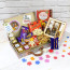 Choose this exclusive pack of Kaju Mix, Almonds in Golden Bucket, Cashews in Golden Bucket, Ferreo Rocher 4 Pcs, 4 Hand Made Chocolates with Rakhi Stickers, Dairy Milk Fruit & Nut, Dairy Milk Crackle, Nutties, Five Star, Kitkat, Ganesh Idol, 5 Rakhi Props, Rich Look Heavy Gift Box with Clasp & Handle as your Rakhi Gift. The Gifts are arranged in a beautiful box, and accompanied by 2 Fancy Rakhis, a premium Handcrafted Designer Tika (with Roli & Chawal on fancy base) and a Greeting Card to express your message of love to Bhaiyya! We deliver all over India.